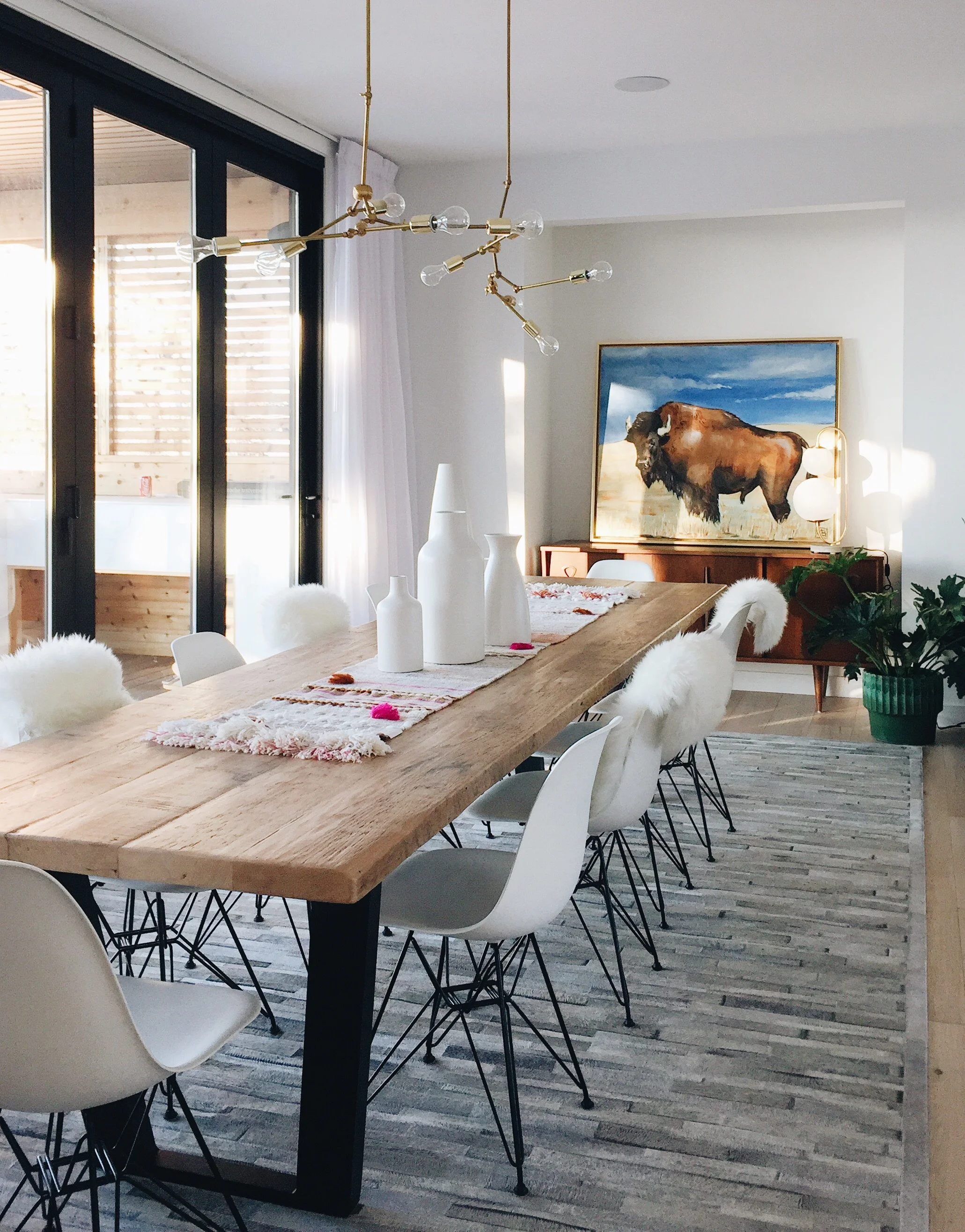 The dining room furniture was primarily there to begin with, we added the hide area rug and accessories.